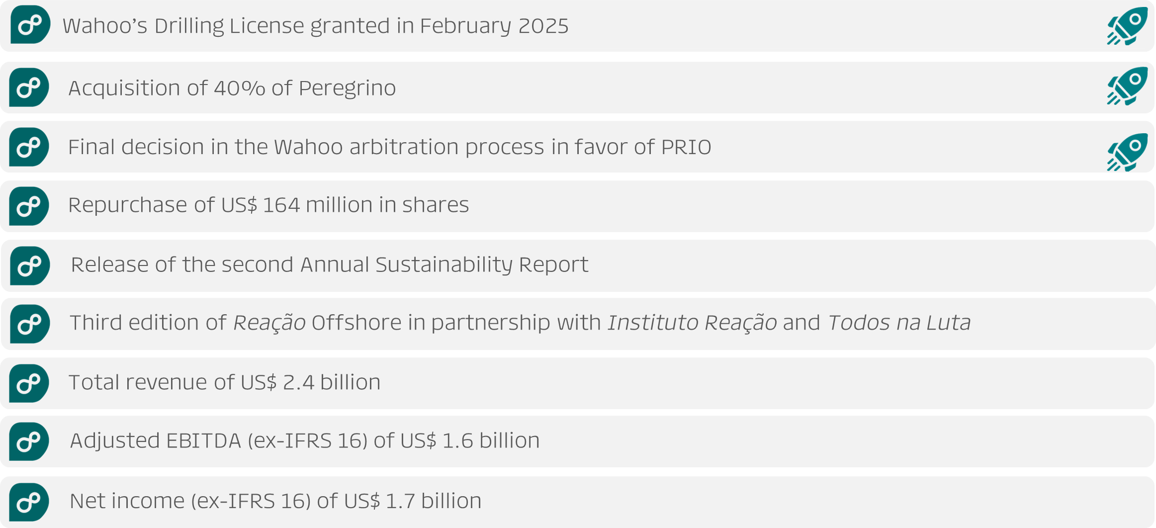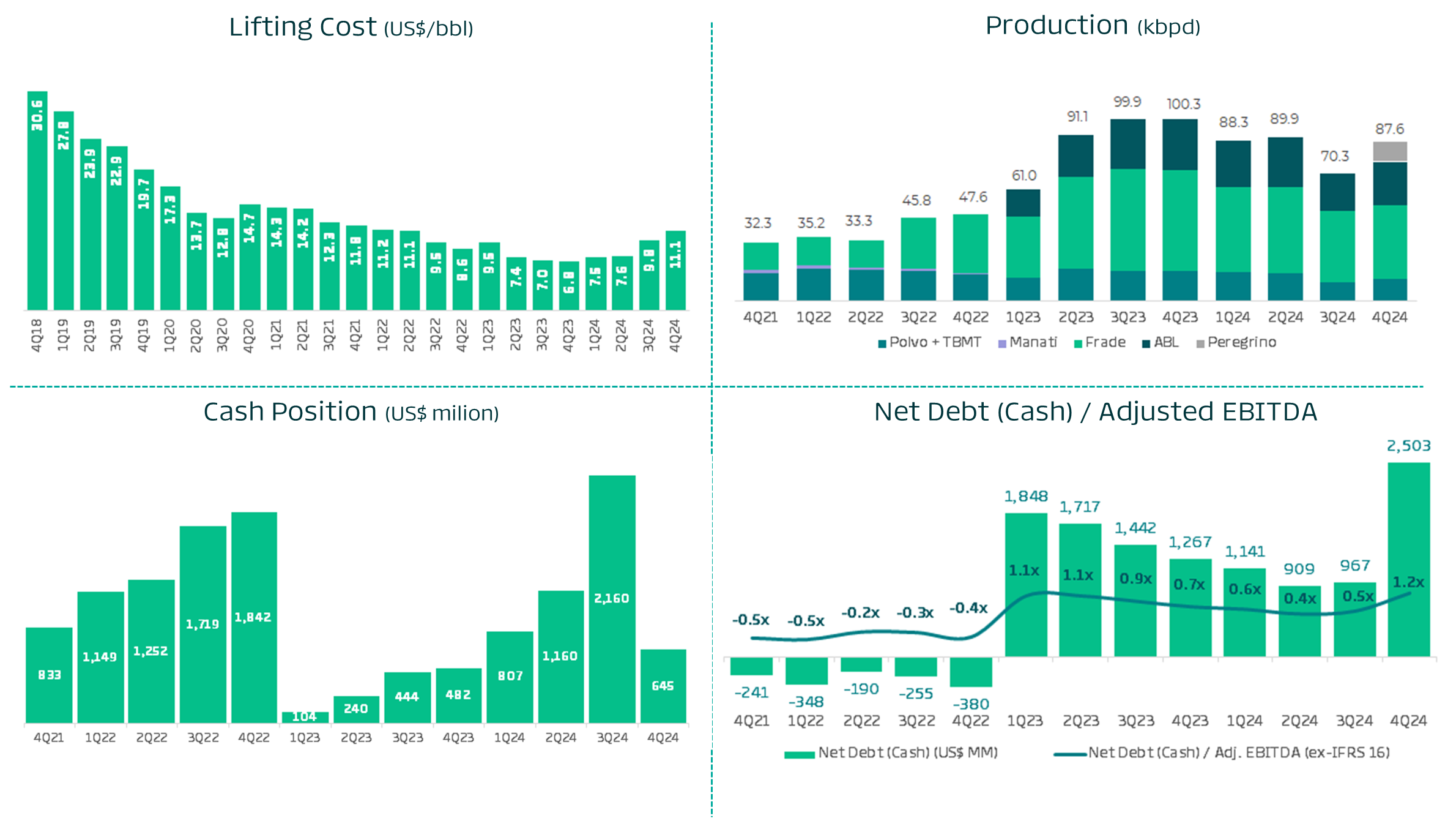 PRIO S.A. (“Company” or “PRIO”) (B3: PRIO3) announces its earnings for the fourth quarter of 2024 and the year of 2024.