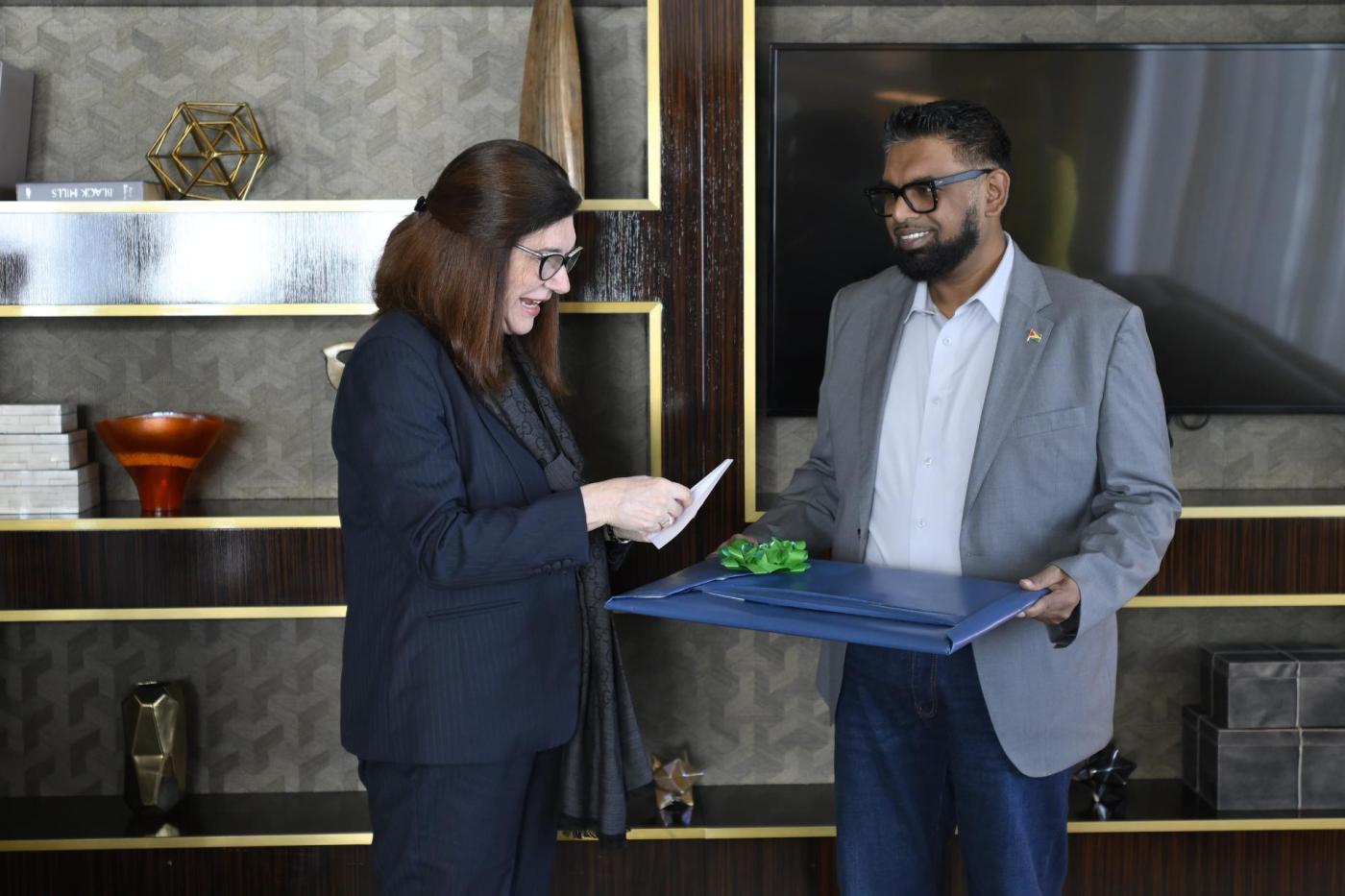 Magda and Irfaan Ali discussed opportunities in the exploration and production of oil in Guyana’s deep waters and other possibilities for South-South cooperation, aimed at the energy integration of the region.