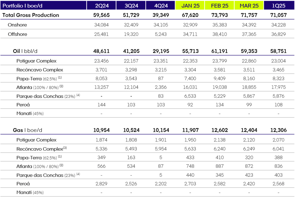 (1) Papa-Terra: On April 16, 2024, 3R Offshore exercised, in accordance with the provisions of the Joint Operating Agreement (JOA), the right of compulsory assignment (forfeiture) of the 37.5% undivided interest held by Nova Técnica Energy Ltda. (NTE) in the consortium, due to NTE’s default on financial obligations. Following the exercise of forfeiture, NTE initiated arbitration proceedings questioning the application of the compulsory assignment clause provided in the JOA and filed pre-arbitral precautionary proceedings before the Court of Justice of Rio de Janeiro, where an injunction was granted, ordering the suspension of the process before the ANP until the arbitral decision is rendered. The Company awaits the decisions resulting from the arbitration and informs that the Arbitration Court was formed in March 2025; (2) On September 26, 2024, the Company completed the transaction to sell 20% of Atlanta to Westlawn Americas Offshore LLC, reducing its stake in the asset to 80%; (3) In March 2025, ~26% of the gas produced in the Recôncavo Complex was reinjected; (4) On December 30, 2024, the Company completed the acquisition of the 23% stake in Parque das Conchas held by QatarEnergy.