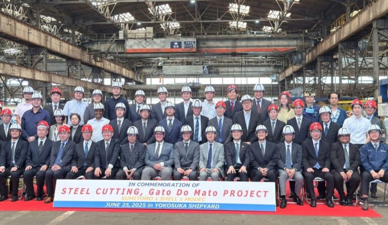 (offshore-energy.biz) The steel-cutting ceremony for a floating production storage and offloading (FPSO) unit destined for a field offshore Brazil operated by the Brazilian subsidiary of the U.K.-headquartered energy giant Shell has been held at the Sumitomo Heavy Industries’ Yokosuka shipyard in Japan.