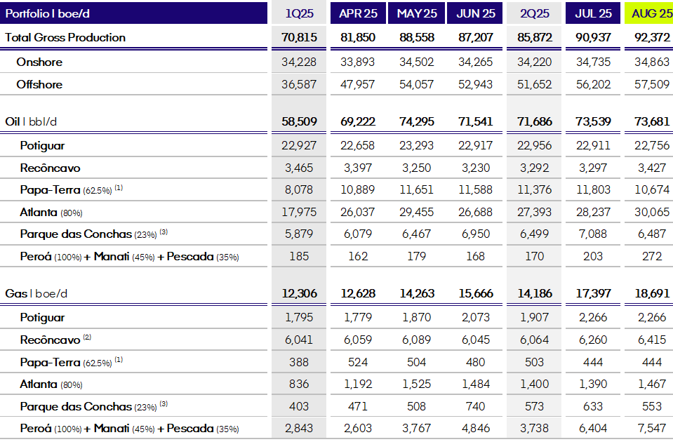 BRAVA ENERGIA S.A. (“BRAVA” or “Company”) (B3: BRAV3), informs its investors and the market in general the preliminary and unaudited production data for the month of August 2025.