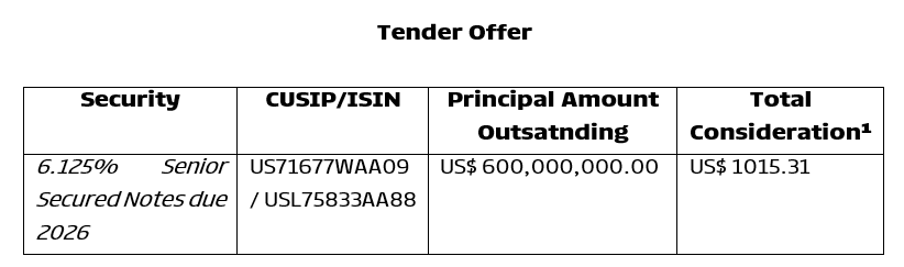 The Company also informs that PRIO Lux has initiated efforts to conduct a tender offer, in the international market, for the 6.125% Senior Secured Notes due 2026 (“Notes Subject to Tender Offer”), up to a principal amount of US$600,000,000.00 (six hundred million U.S. dollars) (“Tender Offer”), as follows: