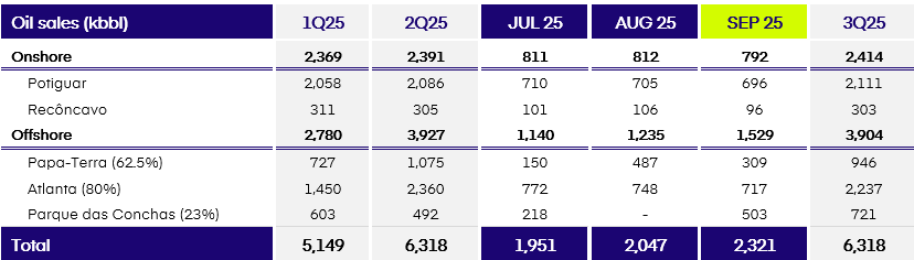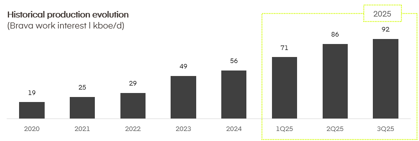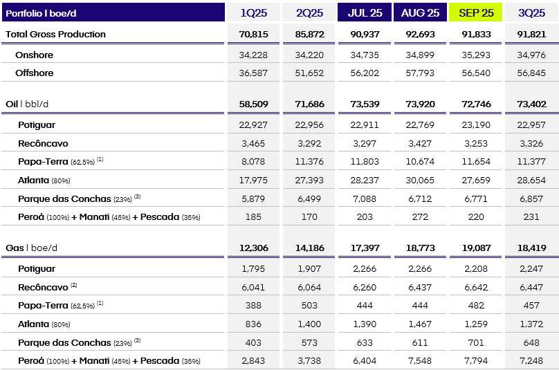 With the September result, Brava achieved an average daily production of 91.8 thousand boe in the third quarter of 2025 (3Q25), an increase of 7% when compared to the previous quarter, renewing its quarterly production record in both the Onshore and Offshore segments.