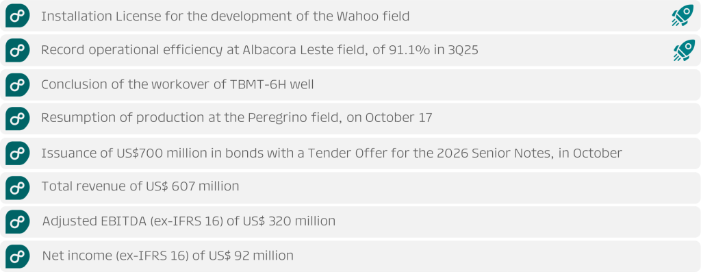 November 4 – PRIO S.A. (“Company” or “PRIO”) (B3: PRIO3) announces its earnings for the third quarter of 2025.