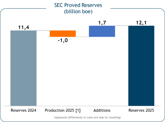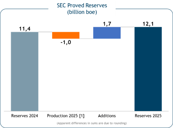 January 28, 2026 – Petróleo Brasileiro S.A. – Petrobras discloses its proved reserves of oil, condensate and natural gas, according to SEC (U.S. Securities and Exchange Commission) regulation, estimated at 12.1 billion barrels of oil equivalent (boe), as of December 31, 2025. Oil and condensate, and natural gas correspond to 84% and 16% of this total, respectively.
