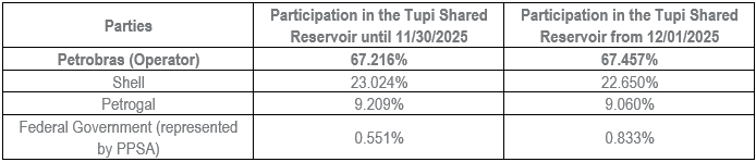 It should be clarified that the Tupi AIP does not include the reservoir known as Iracema, which remains with the same participation shares as the BM-S-11 consortium.