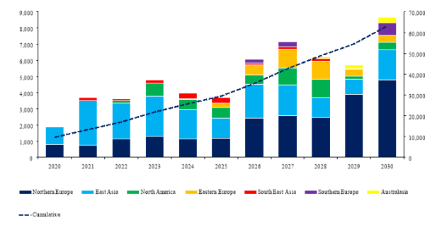 The market for offshore wind farm cables is set to grow six-fold over the course of this decade, according to a new report published by RenewableUK. The global market for subsea power cables is divided between array cables which run between the turbines of an offshore wind farm connecting them to the offshore substation, and... Continue Reading →