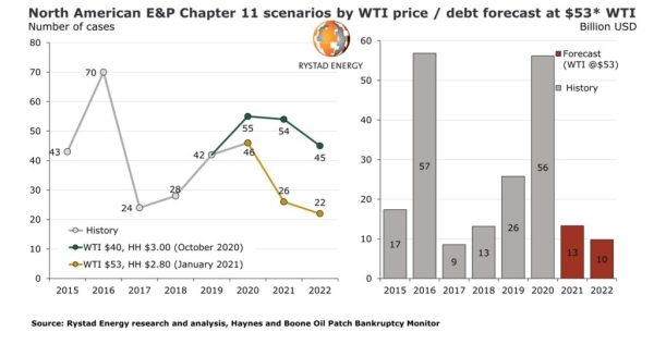 After the costliest Chapter 11 year in history, 2021 bankruptcy numbers will normalize if WTI keeps up, an analysis by Norwegian energy intelligence firm Rystad Energy has shown. The combined debt of North American E&P and oilfield service companies that filed for Chapter 11 bankruptcy protection last year jumped to $102 billion, surpassing the $100... Continue Reading →
