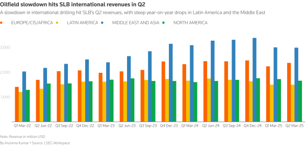(Reuters) - Top oilfield services firm SLB narrowly beat Wall Street expectations for second-quarter profit on Friday, as resilient demand in parts of its international business helped offset drilling slowdown in North America, Mexico and Saudi Arabia. SLB, the first of the Big Three U.S. oilfield services provider to report quarterly results, had previously flagged weaker drilling activity... Continue Reading →