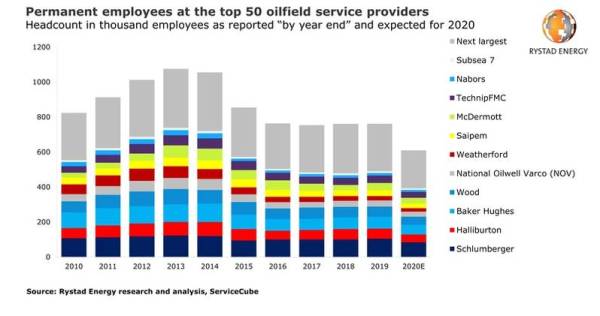 Rystad: OFS industry to see lowest headcount in over a decade as Covid-19 pushes firms into cost-cutting mode