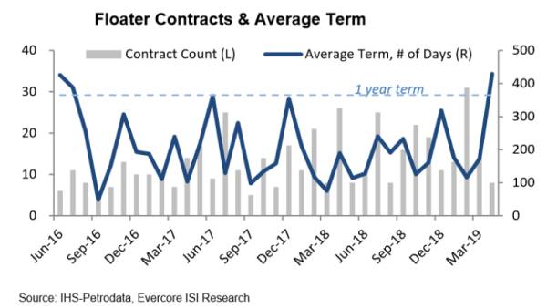 In March, 33 rig contracts were confirmed, according to Evercore ISI’s latest “Offshore Rig Market Snapshot.” This is up from 19 a year ago as the offshore drillers signed 135 contracts in 1Q or up 44% from 94 in 1Q 2018. The jackup mix was unchanged at 57%, but Evercore said it was encouraged that... Continue Reading →