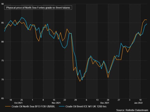 (Reuters) - Frantic oil buying driven by supply outages and signs the Omicron variant won't be as disruptive as feared has pushed some crude grades to multi-year highs, suggesting the rally in Brent futures could be sustained a while longer, traders said. Prices for physical cargoes do not always trade in tandem with oil futures... Continue Reading →
