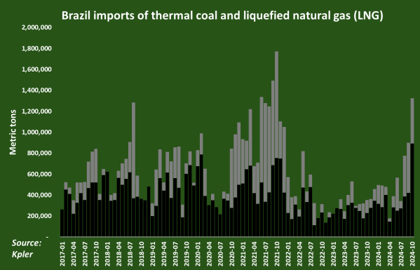 (Reuters) - Brazil is set to import nearly 900,000 metric tons of thermal coal this month, the highest monthly tally on record and three times the monthly average for 2024 so far, according to data from ship-tracking firm Kpler. The coal buying binge comes as an enduring drought has slashed hydropower output to three-year lows,... Continue Reading →