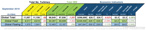This month’s QOWTI (Quest Offshore Turbine Index) shows 11,087 turbines, representing a Global CapEx of $296 billion in the Total Addressable Market (TAM)*. Offshore Fixed Wind ongoing projects incorporate 9,517 turbines, while Floating Wind projects stand at 1,570 turbines. September 2019 QOWTI shows an average CapEx/unit of $26.1 million for fixed turbines and $30.3 million... Continue Reading →