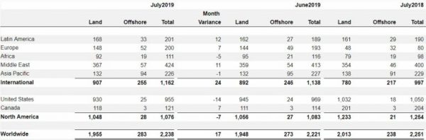 The worldwide offshore rig count in July 2019 went up by 10 units compared to June, and 45 year over year, according to monthly rig count reports by Baker Hughes, a GE company. BHGE splits its rig counts into international and North America rig counts, which combined make the worldwide rig count. The worldwide offshore... Continue Reading →